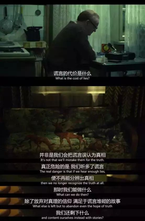 “谎言最可怕的代价,不是它们被误认为真相,而是当我们听过了太多谎言,会再也无法分辨真相。除了放弃对真理的信仰,满足于谎言堆砌的故事,我们还剩下什么。”