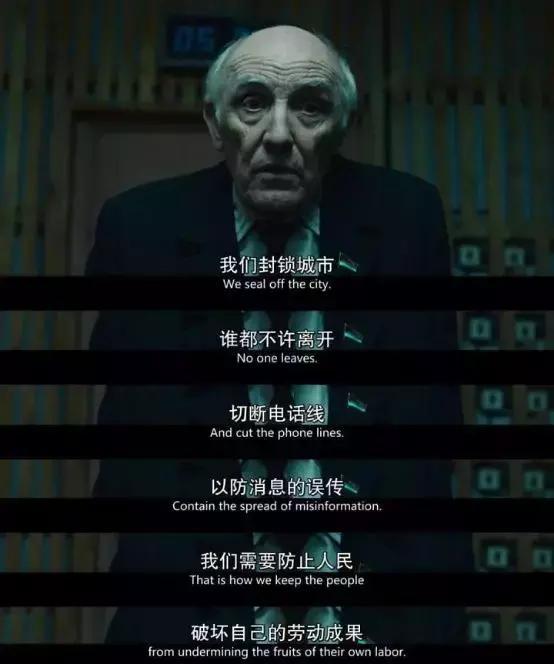 在切尔诺贝利事件中,政府隐去核辐射、广岛、核爆、X射线对人身体的影响,为稳定人心,将重点都放在了“封锁消息”上。