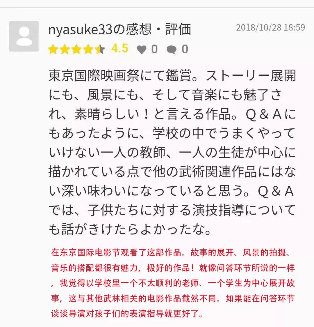 今天,《武林孤儿》结束了在东京电影节的第二场展映,当地影评人和观众依旧给予这部影片很多好评。在filmarks网站上,首批观看了该片的观众不吝赞美——