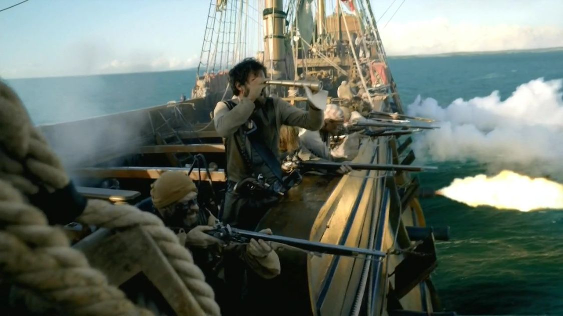 从第五集开始,大规模的海战以及驾驭帆船航行与突击、船员们齐心协力和广深的自然博弈,激动人心的场面和到位的细节,震撼着我们这些活在“陆生时代”的动物(观众)。