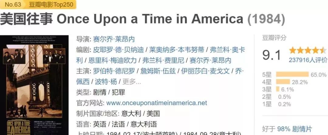 这些名垂影史的“往事”,让后世观众一看到电影名里有“Once Upon a Time”这几个词儿,就不自觉地肃然起敬。