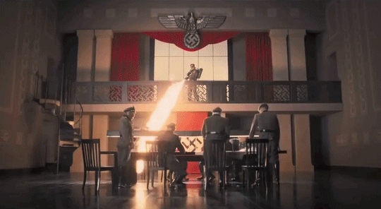 这一幕很容易让人想起《无耻混蛋》的结局,犹太女孩在电影院里火烧纳粹、刺杀希特勒的戏码。