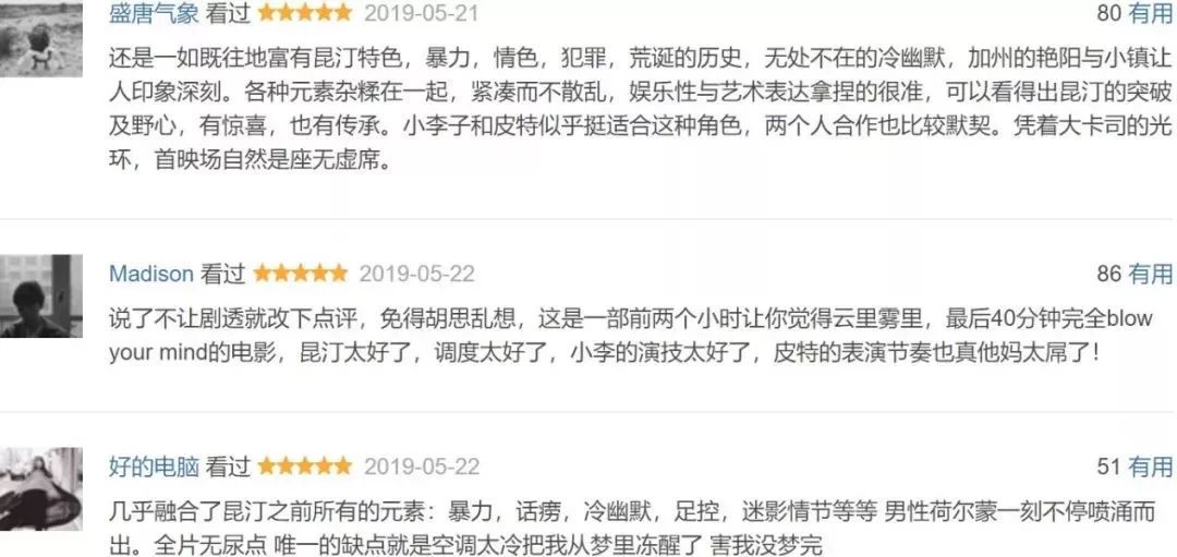 《好莱坞往事》的口碑有多炸裂呢?