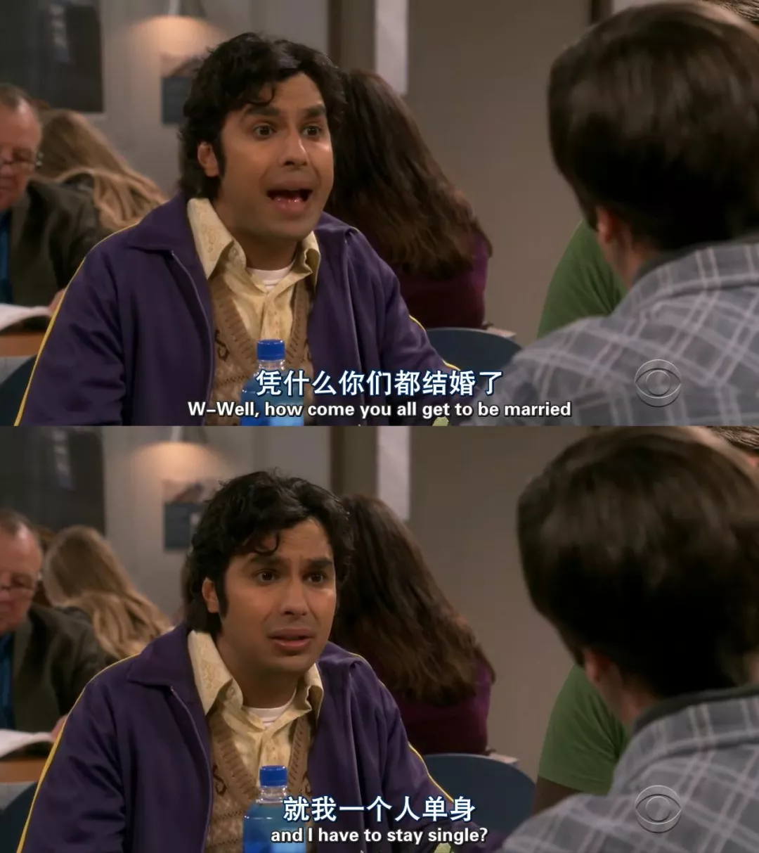 而拉杰,只能回家和小桂子相依为命,给霍华德看看孩子,看别人秀恩爱。