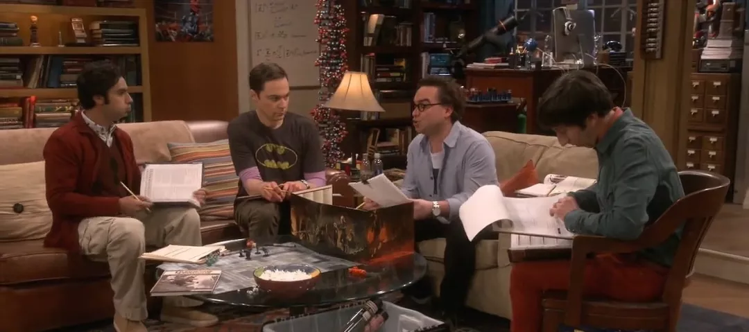 谢耳朵写公式的白板,佩妮的绿色沙发,莱纳德的红色睡袍......