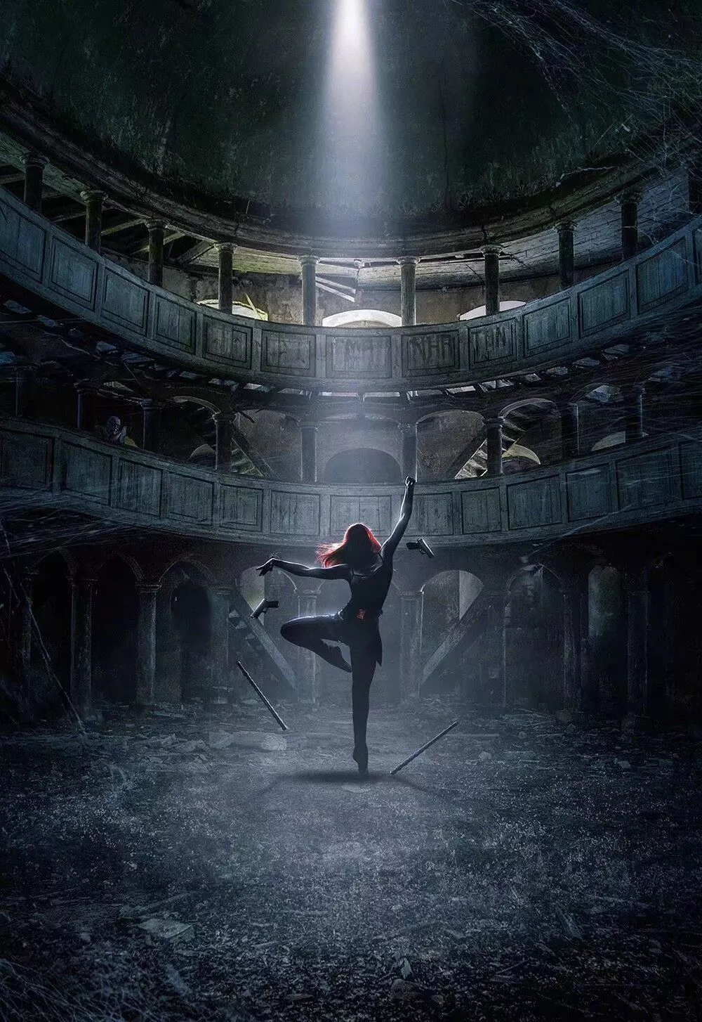 最近,海报大神Boss logic公布了自己设计的一张黑寡妇单人艺术海报,黑暗的大楼里一片狼藉,黑寡妇一个人独自起舞。