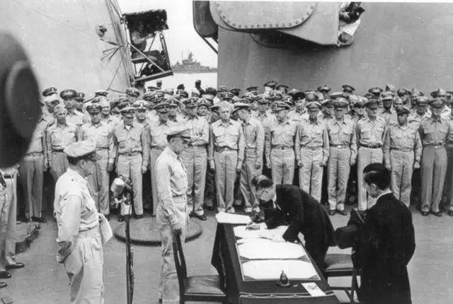 1945年9月2日,在密苏里号战舰上,日本签字投降。