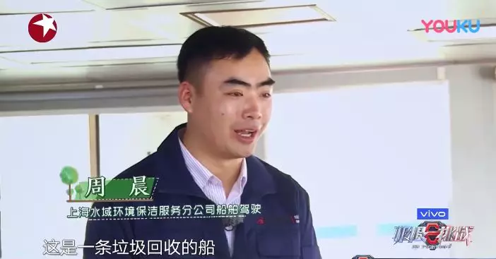 黄浦江清洁工人给他们布置捡垃圾的任务。