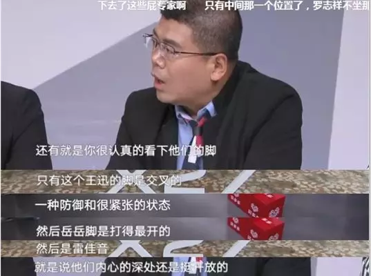但很快,另一位砖家分析五个人脚的姿势,只有王迅两脚交叉,其它 4 人双脚分开。