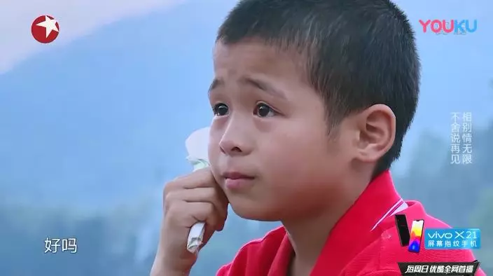 黄磊和留守儿童阳唐粮组队,第一天快结束的时候,黄磊送他回家。