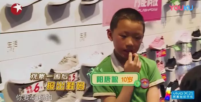 黄磊带他去买运动会要穿的鞋,明明 36 码的脚,他却想要 40 码的。
