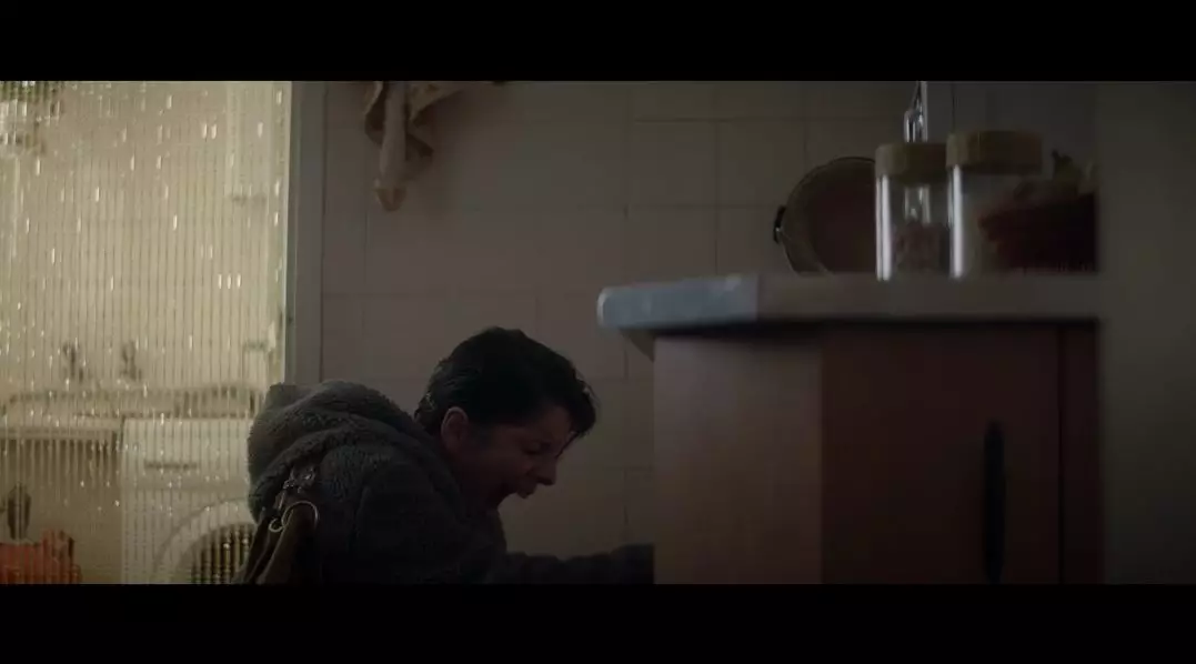 收拾女儿打碎的玻璃,比奥莱塔打开柜门,把脸放低,然后无声尖叫。